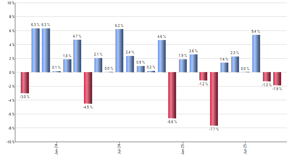 Monthly Total Returns (including all dividends): Oct-23 - Oct-25