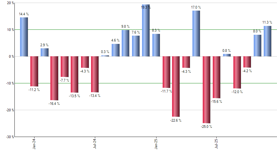 Monthly Total Returns (including all dividends): Dec-23 - Dec-25